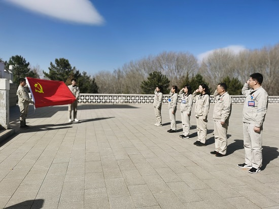 在烈士陵園里,職工們傾聽了馬寶玉烈士的光輝事跡。隨后,大家來到莊嚴(yán)的英雄紀(jì)念碑前,排著整齊的隊列集體默哀,并將手中的鮮花敬獻給英雄。最后,黨員們舉起右拳,重溫入黨誓詞,讓錚錚誓言化作飽滿干勁。
