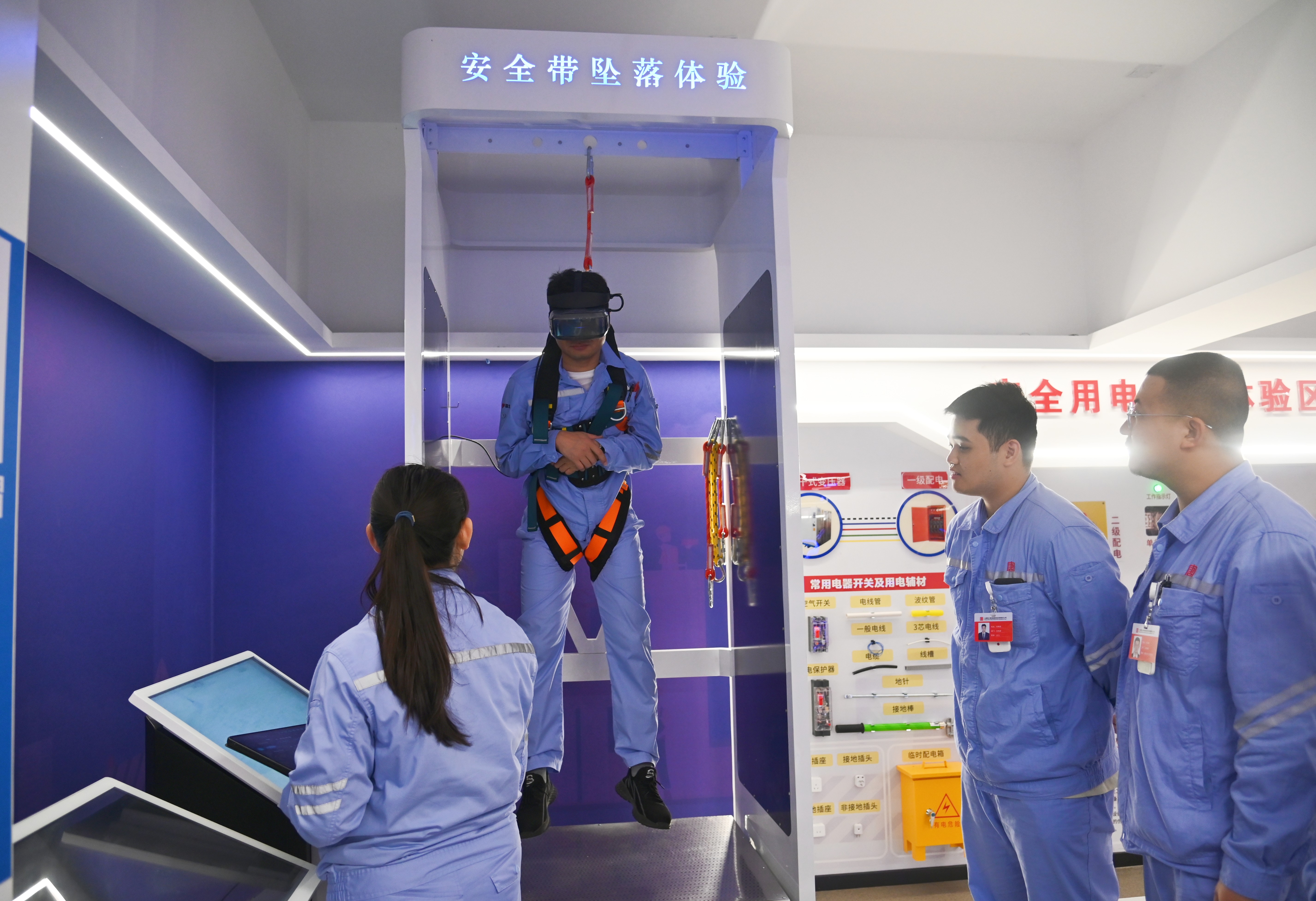 該中心設(shè)有人身事故體驗區(qū)、作業(yè)風險防控與隱患排查體驗區(qū)、有限空間作業(yè)實訓體驗區(qū)、人身觸電體驗區(qū)、安全防護用品體驗區(qū)、應急演練區(qū)、急救培訓區(qū)等9個區(qū)域,采用視、聽、觸相結(jié)合的三維立體式培訓模式,融合虛擬現(xiàn)實和多媒體互動技術(shù),模擬作業(yè)環(huán)境和事故場景。參訓人員可以通過佩戴VR眼鏡,手持操作手柄,站立于動感體驗平臺,對現(xiàn)場各類災害事故進行“零距離”體驗,提供可感受、可操作的實體化培訓,有效推動安全培訓從傳統(tǒng)“說教式”向智能“沉浸式”轉(zhuǎn)型,進一步深化和提升了安全管理水平,豐富了職工安全生產(chǎn)技能、應急處置能力培訓“套餐”,助力本質(zhì)安全型企業(yè)建設(shè)邁出重要一步。