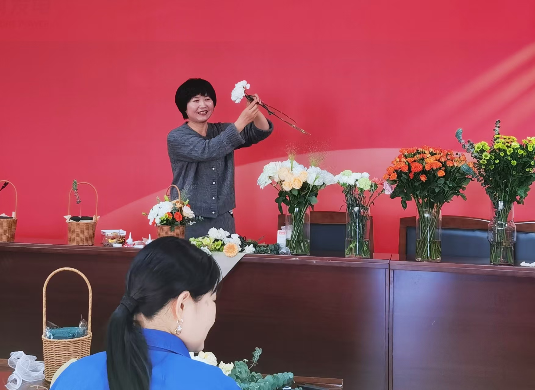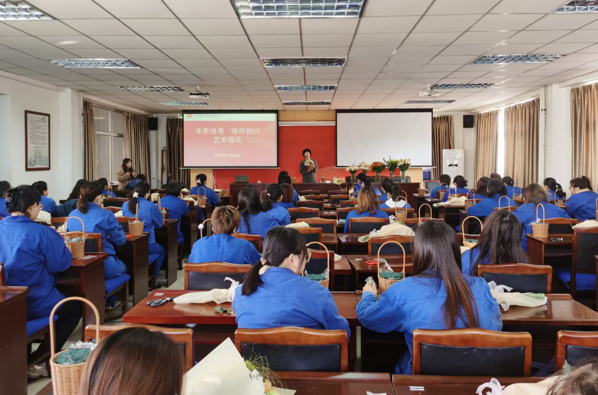 本網訊 為進一步豐富關愛女工工作的服務形式和內容,11月28日,陡河熱電公司在培訓中心二樓會議室組織60余名女職工,開展“冬季浪漫 暖陽相約”藝術插花活動。